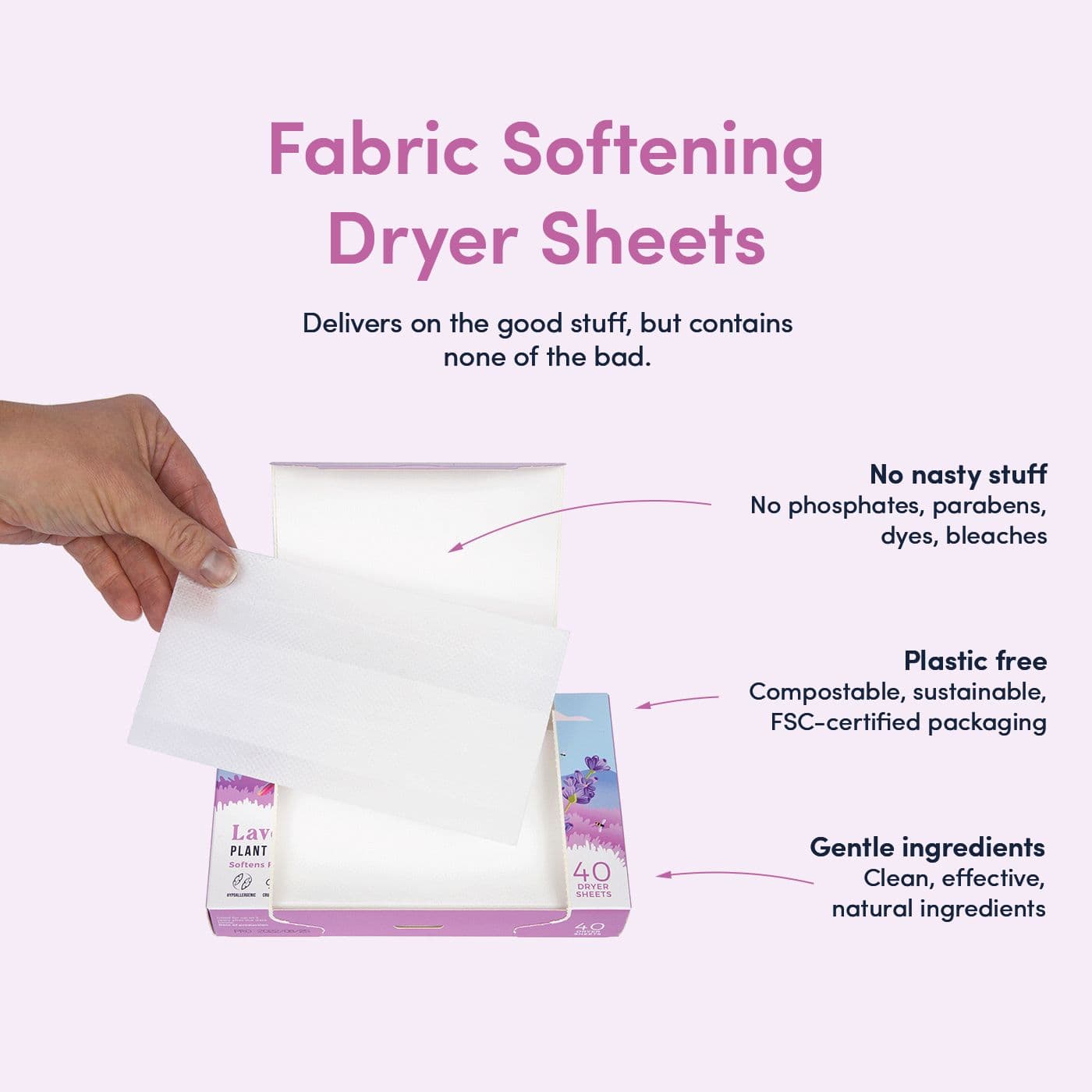 Our dryer sheets work as well or better than store brands, but without all the bad stuff.